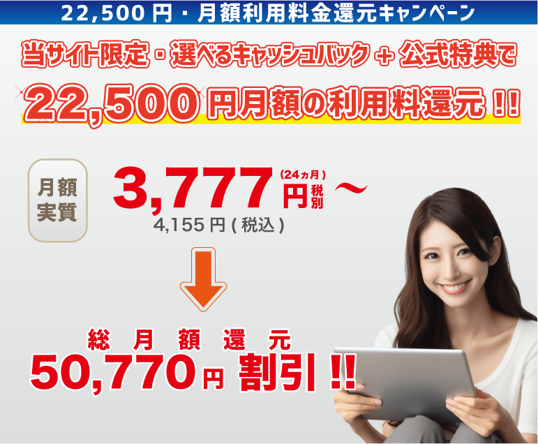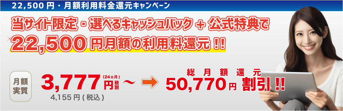 22,500円・月額利用料金還元キャンペーンについて詳細はコチラ