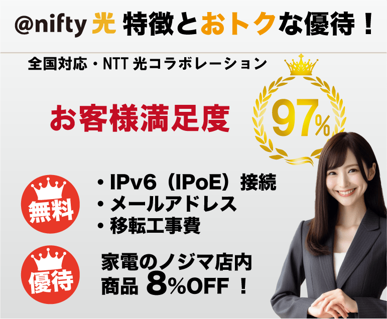 @nifty光の公式特典、および@nifty光をご利用皆様が受けられる関連おトク情報を記載しています