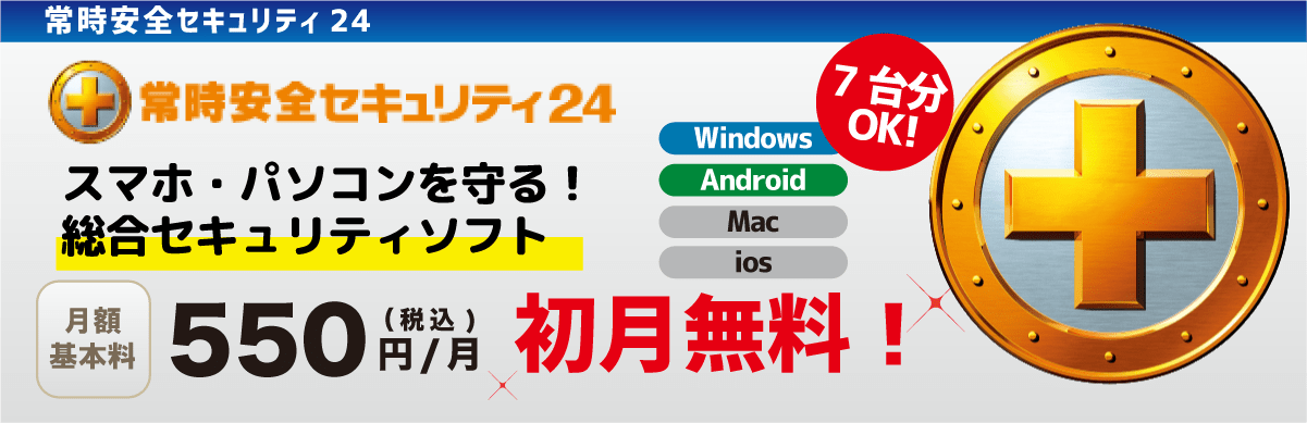 PCやスマホのセキュリティ対策はこれ1つで!windows、MacOS、android、iOSに対応し、最大7大まで保護!お客様のパソコンだけでなく対応スマートフォンまで安心のセキュリティで守ります。